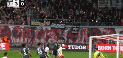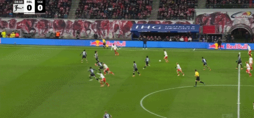 第5分鐘,鮑姆加特納長傳,哈德頭球吊射破門,萊比錫1-0法蘭克福